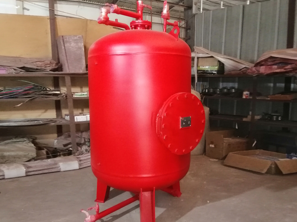 PHYM壓力式比例混合裝置(消防泡沫罐)  壓力式比例混合裝置是廣泛應用于油庫、石油、化工、天然氣、電廠和、編織棉麻、碼頭、加油站、倉儲、高層建筑、燃油鍋爐、地下停車場等場所的消防滅火設備,具有不占空間、利于分區(qū)保護的優(yōu)點,所配置的泡沫比例混合器使其可應用于多個消防分區(qū)。  滅火劑適用范圍廣,無論高、中、低倍數(shù)滅火劑均可使用,混合比例穩(wěn)定、準確、可靠,可提供高質(zhì)量的泡沫混合液,使用時壓力降損小,噴射的泡沫混合液劑量大,穿透力強,能迅速撲滅火災?! 」摅w內(nèi)置膠囊隔膜貯存泡沫液,能有效節(jié)約泡沫液,大大降低滅火成本?! ‘a(chǎn)品分類:立式壓力式比例混合裝置,臥式壓力式比例混合裝置  型號規(guī)格:0.5立方-10立方(可定制)  參  數(shù):    執(zhí)行標準:GB20031-2005  容  積:500L-10000L  泡沫液類型:3% -- 6%  混合液流量范圍:16 - 48 L/S  工作壓力范圍:0.6 - 1.2 Mpa  壓力降不大于:0.16 Mpa